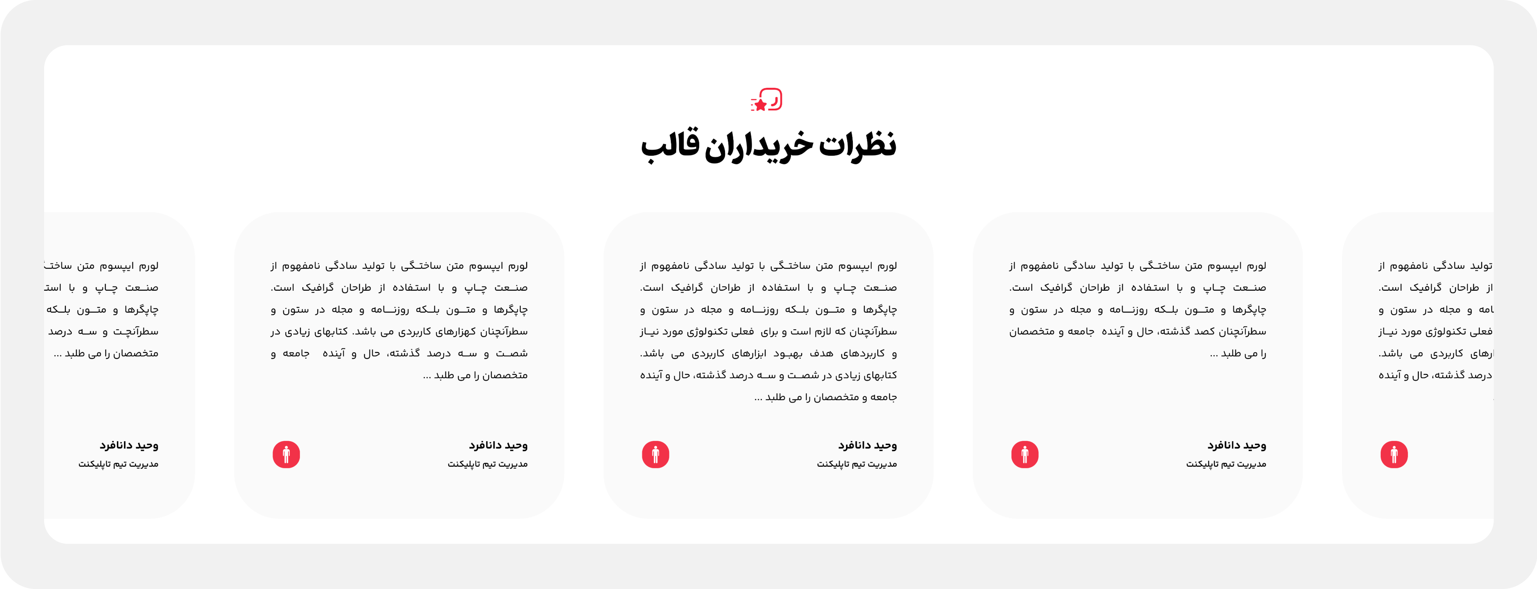 باکس نظرات با قابلیت اضافه شدن نامحدود نظر همراه با نام نظر دهنده ، سمت و لوگو شرکت -